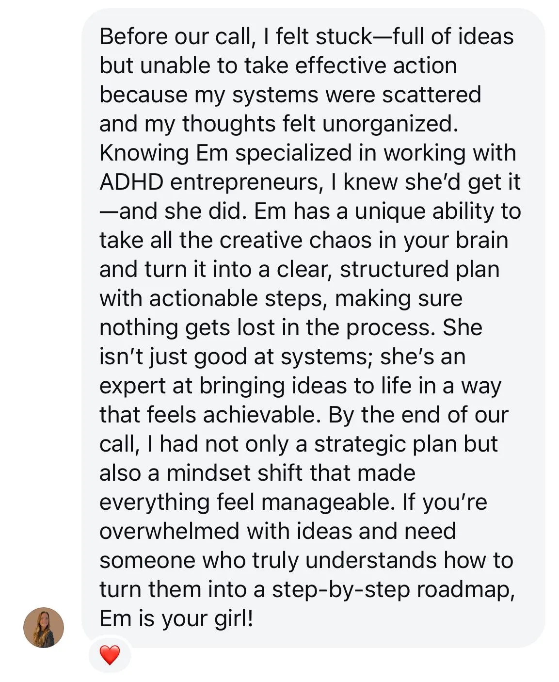 A guiding spark for ADHD & multi-passionate entrepreneurs. Each week you’ll get simple, actionable strategies to cut through the overwhelm and keep moving forward. One light, one step, one win at a time.